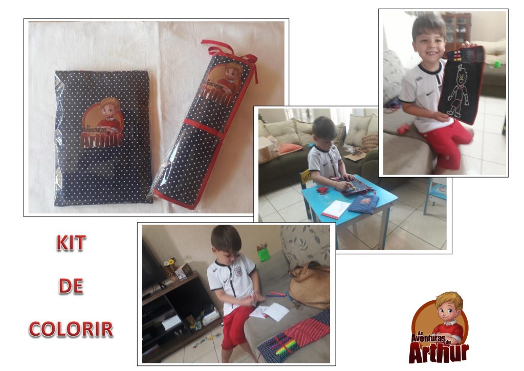 Um gosto comum de nossas crianças é a pintura. O kit de colorir “As aventuras de Arthur” é composto pela lousa de tecido, estojo de tecido com canetinhas e bloquinho para colorir com as ilustrações do livro “Arthur e as Pedras Mágicas”.